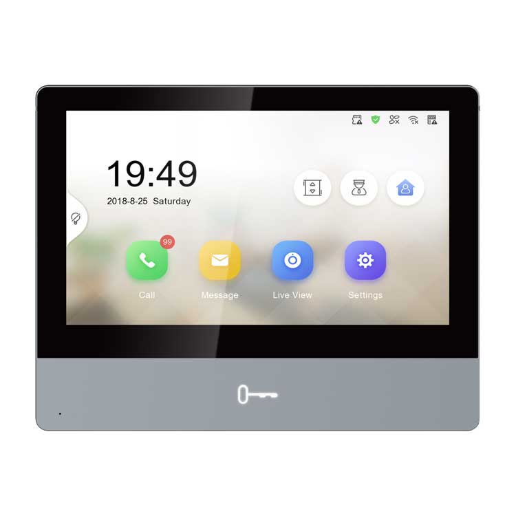 7"" цветной IPS экран с разрешением 1024*600 , сенсорные кнопки, встроенные микрофон и динамик, слот для TF карты до 128Гб, тревожные входы/выходы 8/2, 1 RS-485; 1 RJ-45 10M/100M Ethernet, DC12В/PoE; 10Вт, -10 °C...+55°C, размер 180 × 140 × 22.4 мм, Вес: 600г