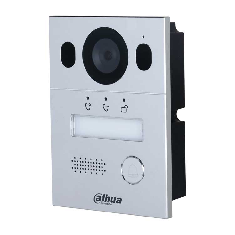 Вызывная панель с разрешением камеры 2мп и CMOS сенсором, угол обзора по горизонтали 110°, панель из алюминия, уровень защиты IP65, IK07. Поддержка режима "Ночь" и голосового оповещения. Групповые вызовы. Видео и аудио сообщения. Удаленный доступ через мобильное приложение DMSS. Питание: через 2-проводной контроллер; Выход питания: 12В, 200мА
