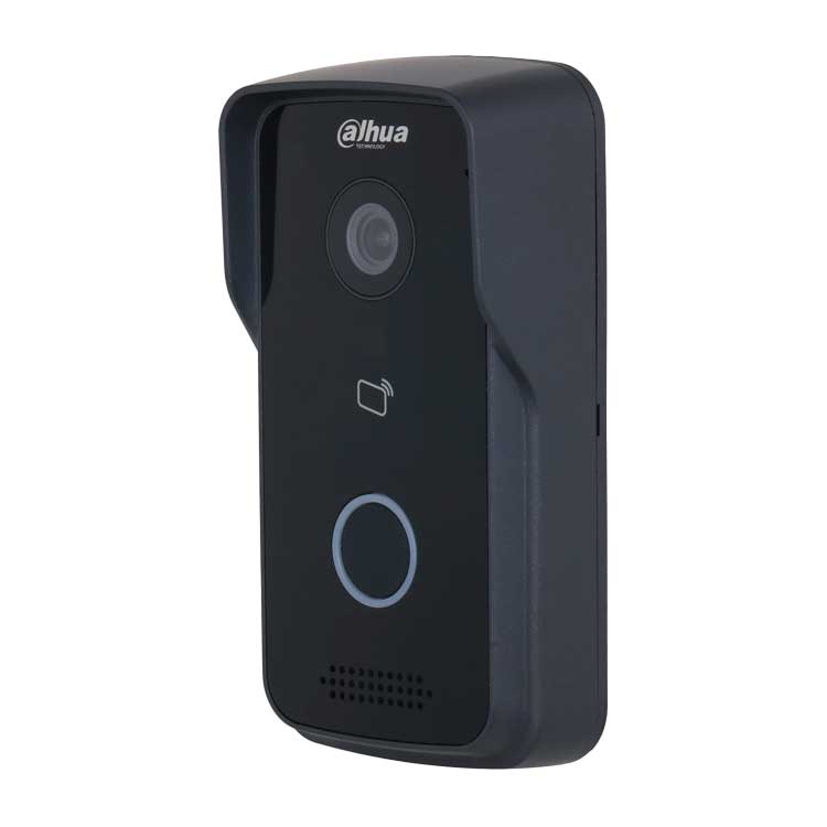 Вызывная панель с разрешением камеры 2мп и CMOS сенсором, WDR, угол обзора по горизонтали 107°, черная, уровень защиты IP65, IK04. Поддержка режима "Ночь" и голосового оповещения. Групповые вызовы. Видео и аудио сообщения. Удаленный доступ через мобильное приложение DMSS. Питание: DC 12V/PoE