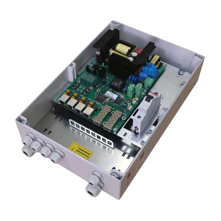 4-портовый гигабитный управляемый уличный коммутатор с встроенным оптическим кроссом и поддержкой РоЕ+ (60W)